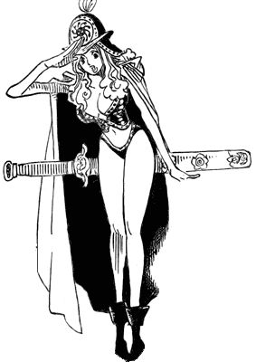 Sie hat einen recht eigensinnigen Charakter. Jedoch scheint sie das, was man im Allgemeinen als ein „ehrenwertes Wesen“ zu sein. Als Ruffy eines Tages aus dem Gefängnis fliehen will, setzt sie recht eigenwillige Methoden ein, um ihn aufzuhalten. Sie verhindert mittels ihrer Brüste seine Flucht.