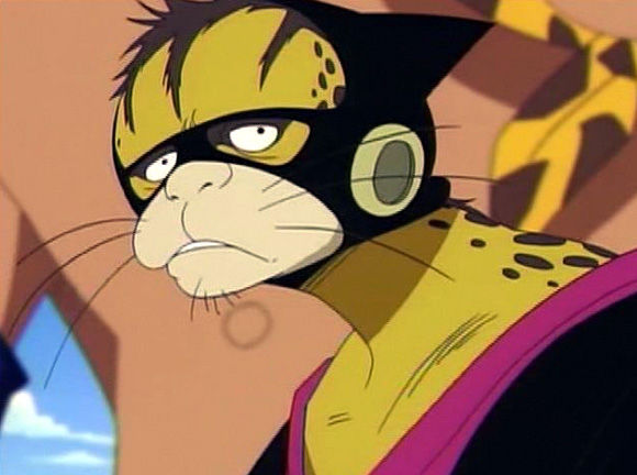 Dieser Charakter erinnert unweigerlich an eine Katze. Dies ist auch nicht verwunderlich, dass es sich bei dem Piraten um einen Gepard handelt. Er hat eine gelb-braune Zeichnung und trägt meist eine maskenartige Kopfbedeckung. Um seine Beine befindet sich eine weiße Trainingshose.