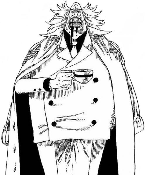 Bei dem Admiral handelt es sich um eine ganz und gar stattliche Person. Seinem Rang entsprechend trägt er einen weißen Mantel mit zwei goldenen Schulterpolstern an den Seiten. Darunter träg er meist einen weißen Mantel, der mir schwarzen Knöpfen verziert ist. Das schwarze Hemd stellt hierzu einen direkten Kontrast an.