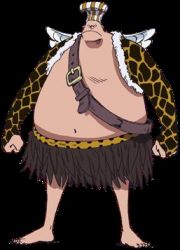 Meist trägt er einen schwarzen Bastrock, der von einem goldenen Gürtel gehalten wird. Darüber trägt er eine kurze Jacke, die mehr an einen Bolero erinnert. Passend zum Rock ist sie im Giraffen-Look designt.