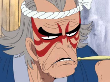 Zudem bedeckt ein blaues Hemd nahezu seinen kompletten Oberkörper, lediglich die Oberarme sind frei. Kodama ist bereits recht alt, so ist es nicht verwunderlich, dass sein Gesicht von unzähligen Falten geziert wird.