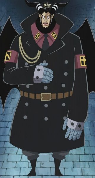 Passend – wenn man die Tatsache bedenkt, dass es sich bei ihm um den Leiter von Impel Down handelt. Seine Hände verbirgt er stets unter ein Paar Handschuhen. Wie diese aussehen mögen, lässt sich nur recht grob erahnen. Wie alle anderen Angestellten des Gefängnisses, trägt auch er eine entsprechende Uniform – lediglich mit dem Unterschied, dass seine komplett weiß ist.