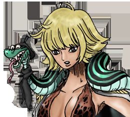 Bei der Amazone handelt es sich um eine sehr nette und vor allem fürsorgliche Person. Zudem liebt sie allerlei Schnickschnack. Auch Deko hat es ihr angetan, so konnte sie beispielsweise nicht anders, als Ruffy in seine geflickte Hose ein paar hübsche Blumen zu nähen.
