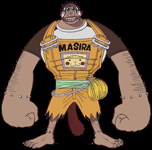 Masira scheint genauso wie Ruffy eine Frohnatur und etwas naiv zu sein, kann aber schnell wütend werden, wenn er denkt jemand würde sich seinen zu bergenden Schatz schnappen. Auch wird er schnell Verlegen, wenn ihn jemand einen Affen nennt.