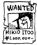 Mikio Itoo sei laut Oda ein hervorragender Schütze und stelle sich später in der Geschichte vor. Tatsächlich taucht er mehrmals als Steckbrief mit immerhin einer Summe von 1.000.000 Yen auf. Üblicherweise werden die Kopfgelder jedoch in der fiktiven Währung Berry und nicht in der japanischen Währung „Yen“ festgelegt.