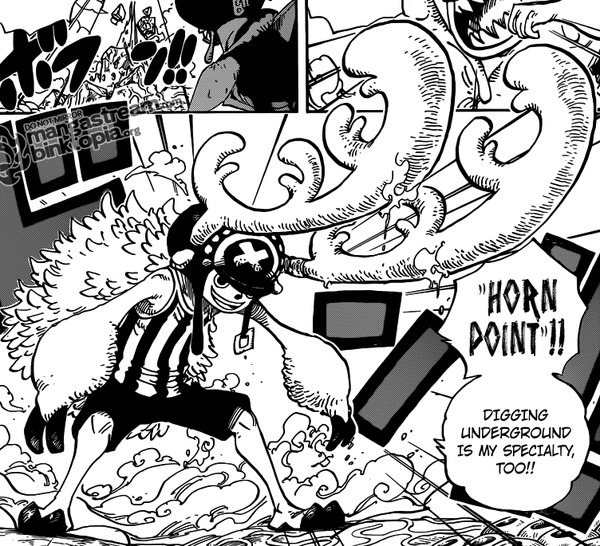 Unterdessen plant Daruma noch weitere Fallgruben zu schaffen. Während er sich voller Elan immer tiefer in die Erde gräbt, bemerkt er jedoch noch eine weitere Person. Auch diese befindet sich wie er, unter der Erde. Es ist Chopper der sich mit zwei riesigen Schaufeln durch die Erde gräbt. Er befördert Daruma kurzerhand wieder an die Oberfläche und verkündet, dass es ebenfalls seine Spezialität sei sich durch die Erde zu graben.
