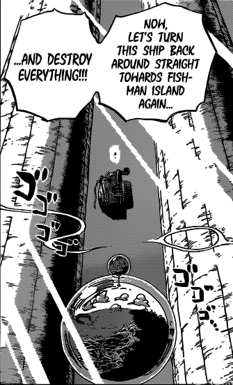 Hodi hat van der Dekken gerade mit seinem Dreizack durchstossen. Van der Dekken fackelt nicht lange, berührt Hodi und legt ihn auf diesem Wege als neues Angriffsziel fest. Hodi begreift noch nicht, wieso er dies tut. Zwar fühlt sich er von van der Dekken betrogen, doch wäre es durchaus in seinem Sinn, wenn die Noah einerseits der Fischmenscheninsel als auch den Strohhüten den Gar ausmachen würde.